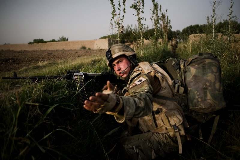The pictures below are from a routine patrol that took place in the Nad' Ali district of Helmand province recently. The patrol, from the 1st Battalion The Duke of Lancaster's Regiment went out to resupply another Platoon of troops in a nearby compound with water and rations when they came under fire from a couple of Taliban positions.